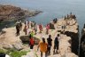 乘船往北果洲進發,坐上駁艇,在小碼頭登岸。沿着水泥小徑走至銀瓶頭的「200」號燈塔。沿着山徑下降至岩頂的大片平地,崖下便是大灶口洞。