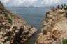 循原路走回小碼頭,再往前走不遠,便是銀瓶頸,危崖對岸便是地獄岩、大砲石、月球崖和西式棺材石。