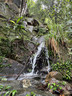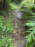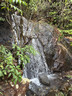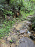 沿着鳳凰徑/羗山郊遊徑行,來到分岔路口,鳳凰徑及羗山郊遊徑在此分途,依指示轉右往下行,來到標距柱C1307的分岔路口,左邊是舊日的羗山郊遊徑,現時仍有官方路徑前往鳳凰徑第八段引水道近大浪灣村。依指示轉右,踏進橫山徑。路途起伏不大,偶在樹陰下行走,偶有開揚海景,但可以肯定的是,這段路遊人甚少,有大量攔路蜘蛛網,步過樹陰底務必要看清楚,以免成為網中人。原先以為這段橫山徑會頗為沉悶,但這兩三天下過雨,而山徑會跨過數條石澗上游,景色有點意想不到,但由於水流有點漲及急,過澗時必需小心處理,安全至上。接近橫山徑最後一道石澗(靈白左澗)前,南面一大片下着雨的黑雲正朝向大嶼山推進,只好加快腳步,幸好順利安全過澗,然後扺達從分水坳下來的分岔路口,迎接郊遊徑餘下約一公里的落山路段。下降途中,大雨來臨,幸好小徑上有不少排水溝/引流壆,加上小徑有些斜度,小徑積水不算多;但即使是高端的行山鞋,只要鞋底坑紋積聚了沙泥,無可避免抓地力必定大打折扣,在所難免會感到「跣」。來到小徑盡頭,完成了逆走羗山郊遊徑,步過跨引水道的行人橋,踏上引水道旁的車路,亦即是鳳凰徑第八段。由於想探訪L076,於是轉右朝分流方向前行,不久之後便見L076。