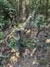 返回村口,沿着大欖煤氣管道小徑前行,經過一個渠蓋後不久,右邊山上不遠處有一座墓穴,走去看看,根據碑文,墓主原籍白石橋村,喝形「觀音座蓮」,1978年重修。返回小徑,覓路穿過樹叢往下行,來到昔日西北面村屋,部份石砌牆身仍然存在。村屋西邊盡頭有一面丁酉年立的「崑崙教」石碑,估計仍有人前來打理。覓路步向西面不遠的墓穴,墓穴規模頗大,喝形「飛鳳啣書」,屬於香港名穴之一,但似乎已經有段時間沒有人前來打理拜祭。