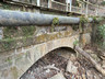 於薄扶林水塘道出發,眼前便是伯大尼修院(法定古蹟)。經過仍在重建的大學宿舍前方,步上通往明德邨的車路,來到昔日輸水道交界,上次行程曾經沿着輸水道步向大學宿舍,今日通道不遠處已經築起鐵絲圍網,未能步向位置「A」。沿着另一邊的輸水道前行,不久之後輸水道被一道混凝土排水渠截斷,轉往上走,沿着車路前行,於明德邨入口前轉左沿梯級下降至輸水道,步向位置「B」。位置「B」附近正進行工程,看看石板路下面,發現磚牆及翼牆,稍為清理一下樹枝及泥土,在底石見到「4」字,原來4號橋尚在人間!