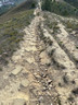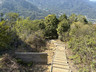 返回北大刀屻山頂,依指示牌指示,前往打石湖橋頭。這段山脊線大致上是元朗區及北區的分界線,亦是漁護署有維修的山徑,接近山頂的路段已經利用預製組件築成梯級,接近山腳位置則仍然是木板及角鐵柱,估計不久將來都會換成預製組件梯級。經過漫長的下降,來到山坳墓地十字路口,正前方及左邊小徑皆可以到達粉錦公路,選擇左轉,穿過墓地,下降至水泥小徑,步過打石湖村,抵達粉錦公路。