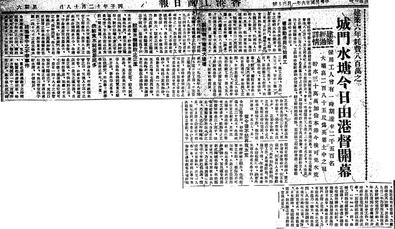 註4:有說城門水塘紀念碑碑文由當時港督郝德傑爵士所撰寫,1937年1月30日舉行揭幕禮,紀念碑沒有刻上水塘名字、揭幕嘉賓名字或揭幕日期。