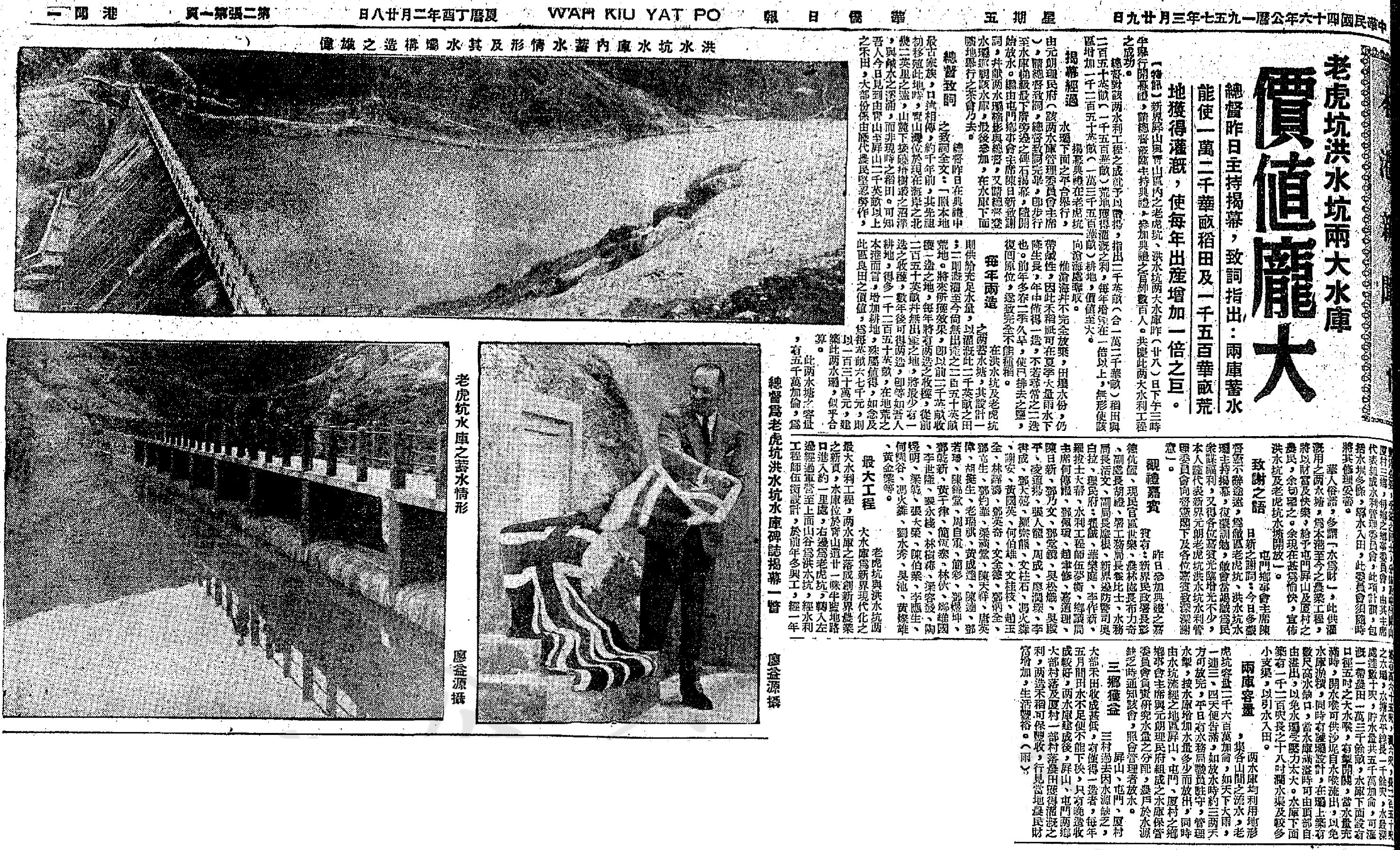 註6:藍地水塘又名老虎坑水塘,根據華僑日報1957年3月29日的報導, 1957年3月28日曾經於老虎坑水塘水壩下面平台舉行老虎坑洪水坑水庫開幕禮。