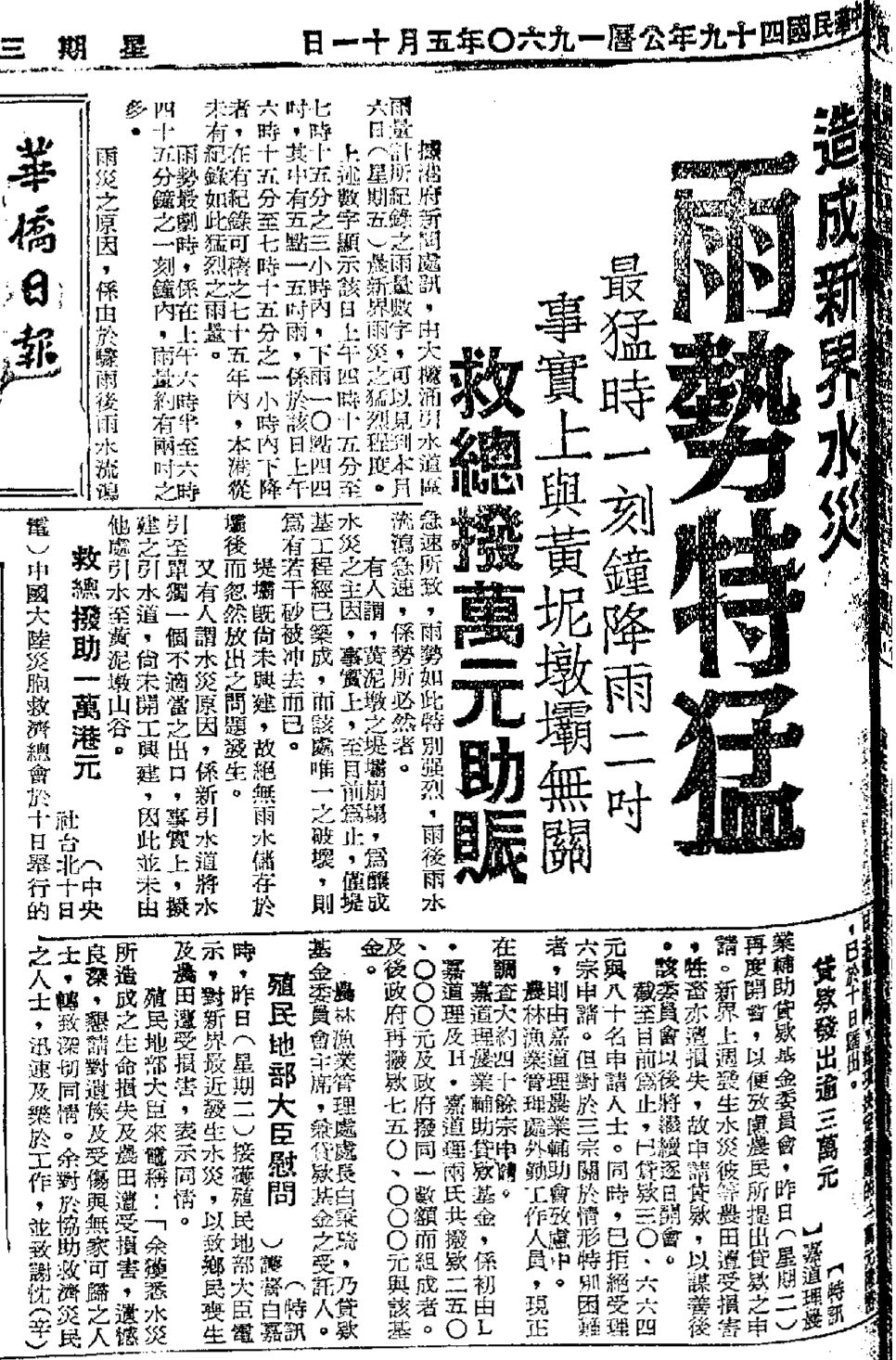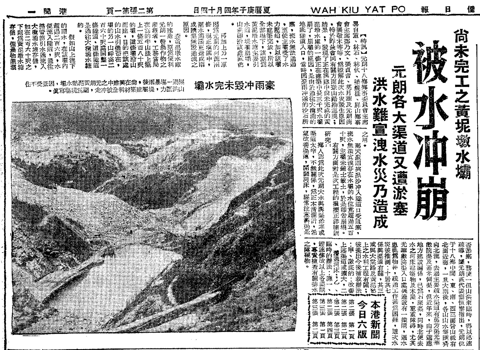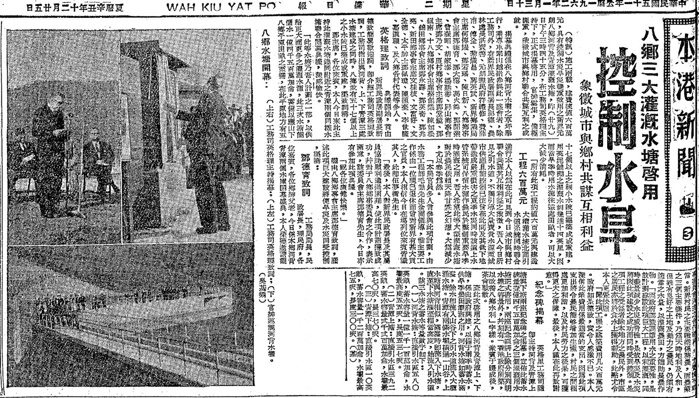 註8:因應農民擔心大欖涌水塘龐大的集水區會影響灌溉用水,當時政府於大欖涌水塘集水區內興建了五組灌溉水塘:藍地、洪水坑、上下清潭、河背及黃泥墩。前四組水塘均有舉行開幕典禮,但筆者卻找不到任何黃泥墩水塘相關的啟用典禮,但找到一篇1960年元朗水災的報導,有人懷疑水災跟建築中的黃泥墩水塘有關。雖然兩天後有報道指出水災跟建築中的黃泥墩水塘無關,猜測(強調:純粹猜測)因為水災而沒有舉行黃泥墩水塘啟用典禮。