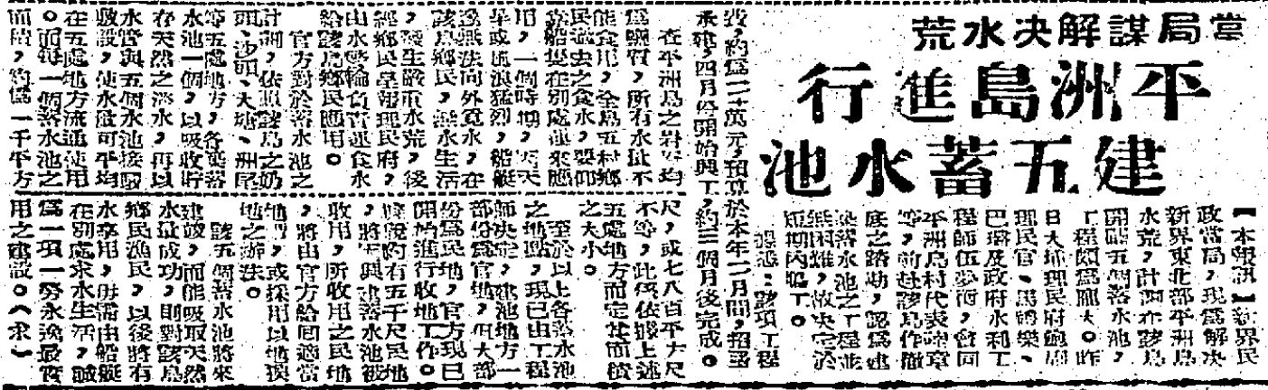 | 東平洲水塘 | 1961-1962年落成(昔日報道),其後再建造了五座水缸(昔日報道),1968年的測量圖已標示水塘、泵房、導管及水缸的位置,現時仍可找到它們。 | ||