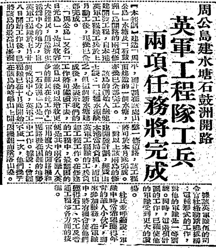 註11:十塱水塘早期為長洲提供食水,1955年9月3日舉行食水開放典禮,數日後,時任港督實地視察十塱水塘,但似乎沒有舉行任何揭幕典禮。