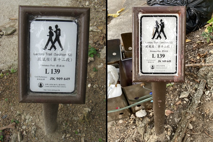 即使是同一條遠足徑,資訊牌有時亦會有不同字體、資訊及排列方式。