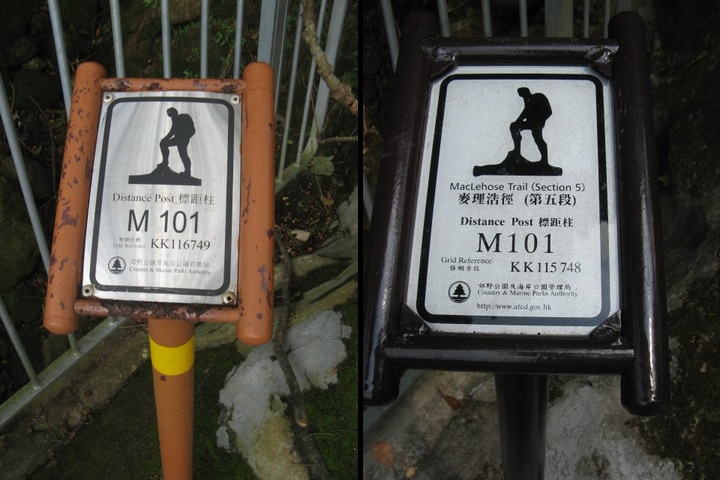 麥理浩徑標距柱M101的格網方位亦曾經改變,但似乎是在同一位置。