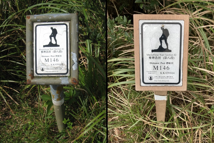 衛奕信徑是四大長途遠足徑中年紀最輕的一條,1996年啟用,當時標距柱已經面世(1994年底,漁農處率先在麥理浩徑豎立標距柱),但衛奕信徑的標距柱確實有點與眾不同,有興趣的朋友可以看看筆者對衛奕信徑的介紹。