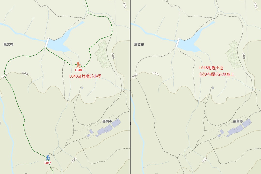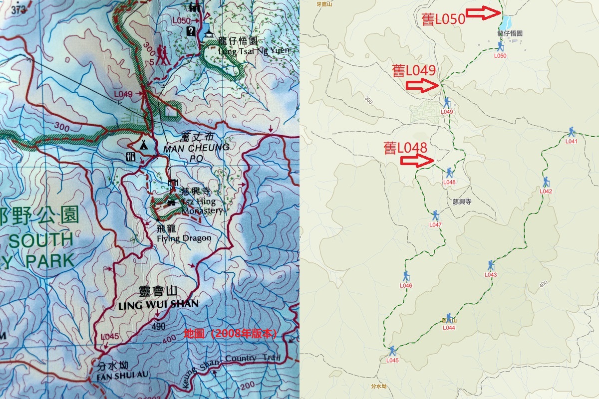 會移位,例如改路,如麥理浩徑第八段及第十段、鳳凰徑第四段或羗山郊遊徑。L048曾經因為鳳凰徑改道而搬家,稍後的章節會有較詳細的資料。
