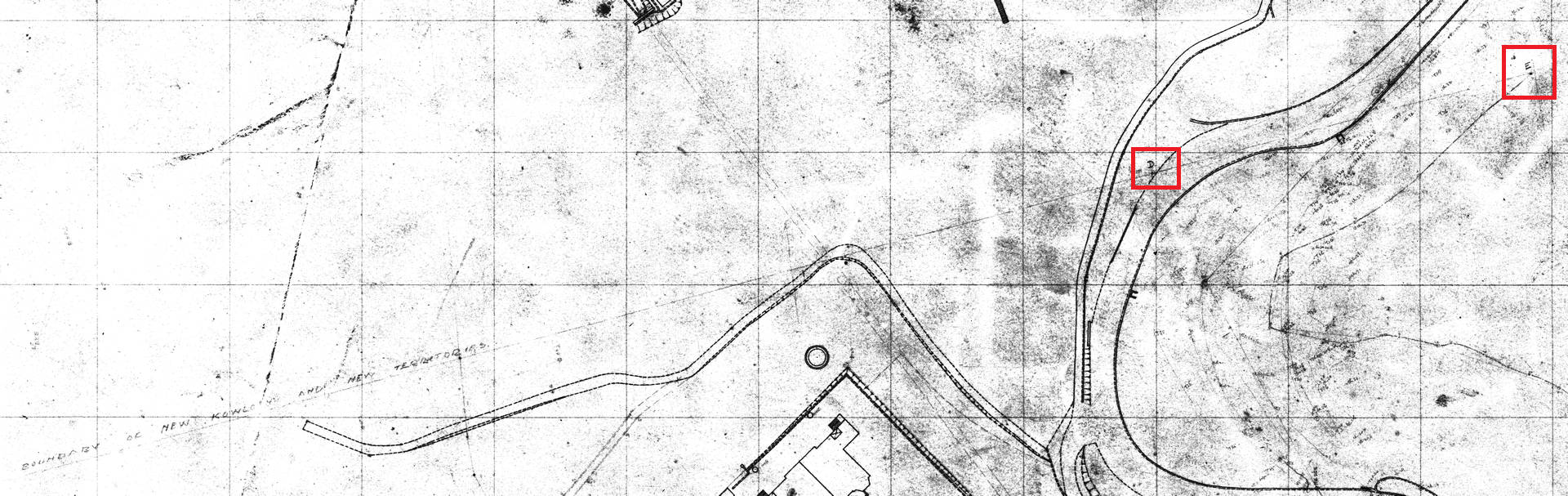 早於1926年的地圖,已經有新九龍的地段規劃。根據昔日的測量圖,當局於九龍西面分界線曾經設置了至少五顆界石,分別位於: