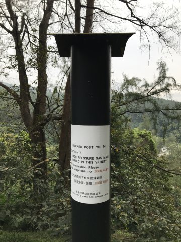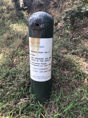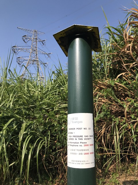 大欖煤氣管道,由川龍西煤氣檢管站至大欖涌,全長約15公里,沿途豎立了至少37個圓筒形標柱(Marker Post,編號#1-37),用作檢查和維修喉管之用。大家只要在網上搜尋「大欖煤氣管道」,便可以找到相關資料,亦可參考行行企企的「大欖煤氣管道」遊蹤。