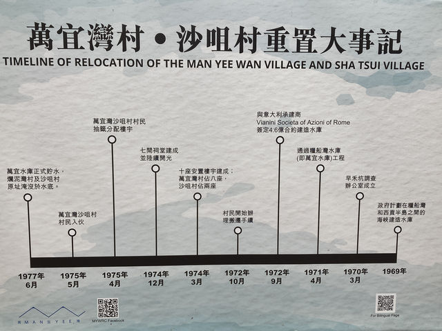 另外,參考沙頭角橫山腳新村面書的敘述:「60年代初為配合政府船灣淡水湖及八仙嶺自然教育徑發展而被安排全村遷移,1961年正式移居現址【橫山腳新村】」。