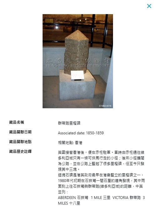 參考網上資料,香港歷史博物館收藏着這面里程碑,細看其中一幅照片,里程碑刻有: