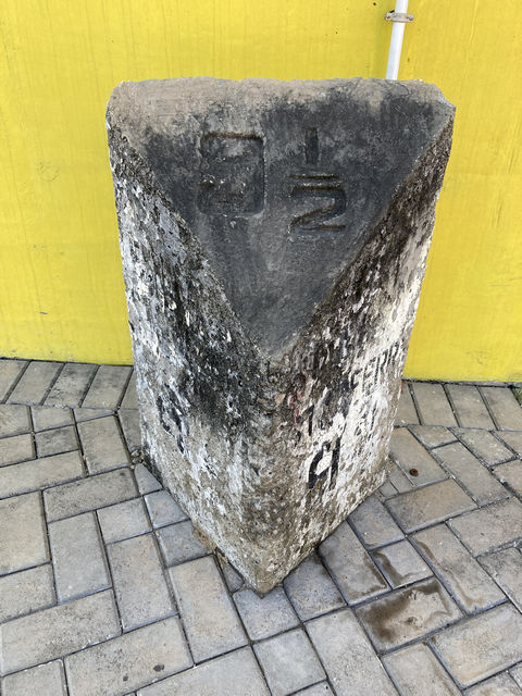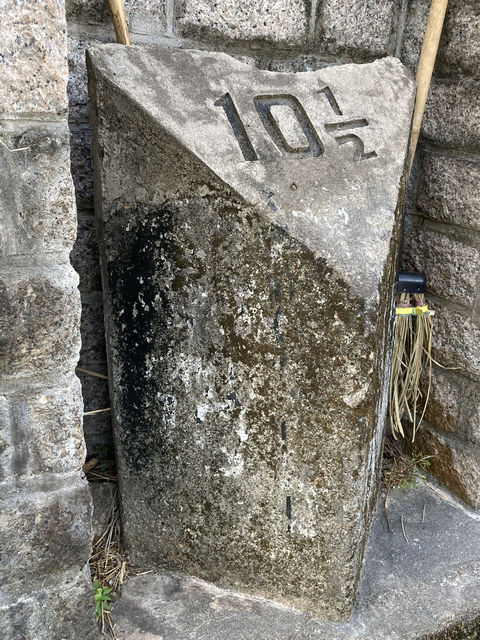 註1:參考其他仍然存在的里程碑,「½」通常是在里數數字的正下方,照片中的「½」應該是後加上去,原本的「½」大部份被水泥遮蓋着。