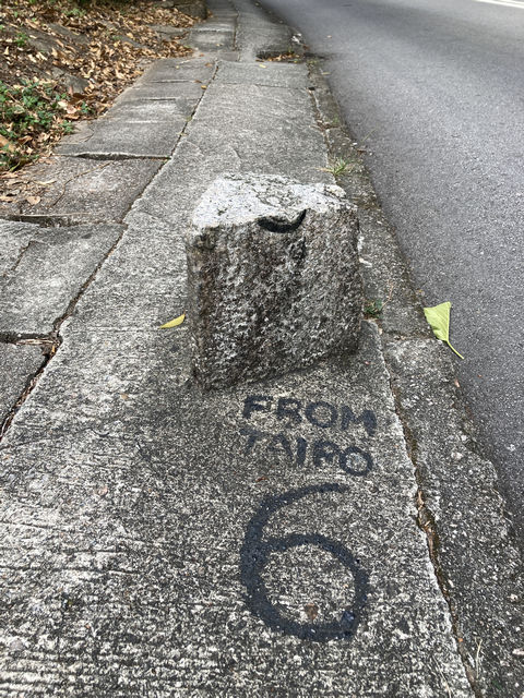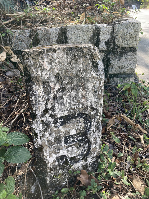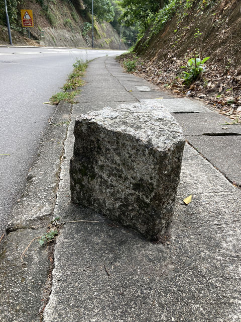 註2:不知是老化抑或交通意外,3¼里程碑部份已經破碎剝落,破碎的石磈跌到地上,拾起碎片,仍可拼回完整里程碑【左】 【右】(攝於2023年)。假若有人擁有相關手藝,帶備工具及物料,應該可以修復它。