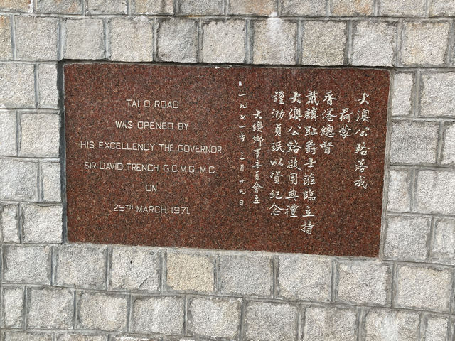 | 大澳公路落成 荷蒙 香港總督 戴麟趾爵士蒞臨主持 大澳公路啟用典禮 謹泐貞珉以資紀念 大澳鄉事委員會立 一九七一年三月廿九日 |