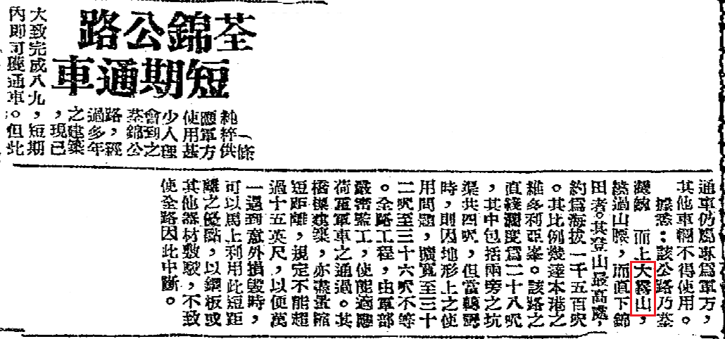 根據網上資料,於1944年,日軍在大帽山建造了一個軍事雷達站,當中包括一條長約九英哩的車路。參考1948年的航拍照片,當時已經有一條通往大帽山山頂的車路,由荃灣開始,經過川龍村、現時的嚮石墳場、現時嘅施樂園及禾塘崗,再上走至海拔900米左右,由山南面繞過東面到北面,然後上升至現時閘口附近。某些舊地圖亦有明確標示此路。 時至今日,荃灣至川龍的一段路成為了荃錦公路的一部份,川龍至嚮石墳場及施樂園至禾塘崗的車路仍有維修及可以通車,而嚮石墳場至施樂園的一段則缺乏維修,路面長出植物,步行是沒有問題,但如果要讓車輛通行,估計需要進行一些改善工程。