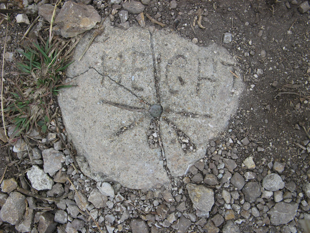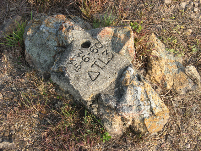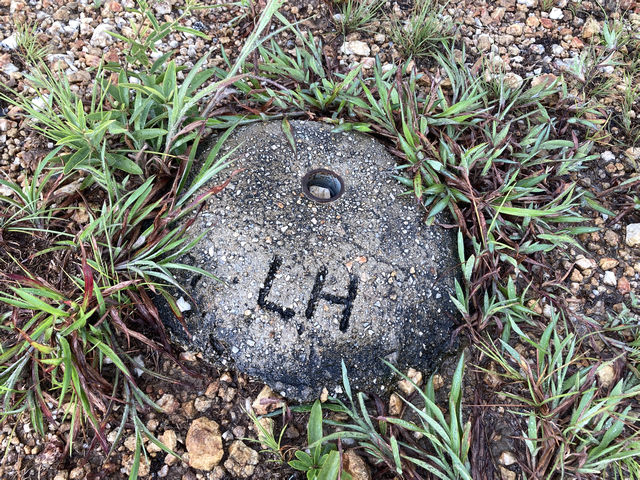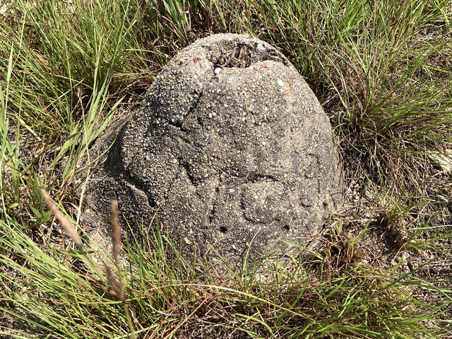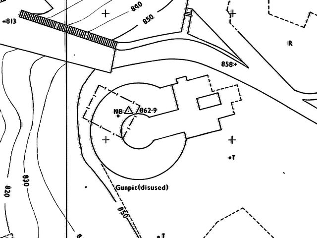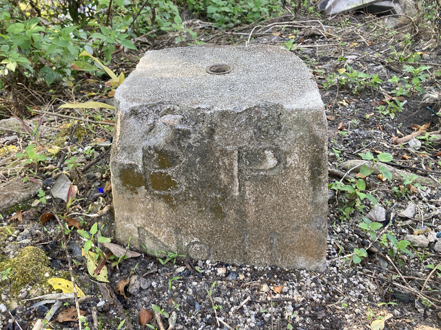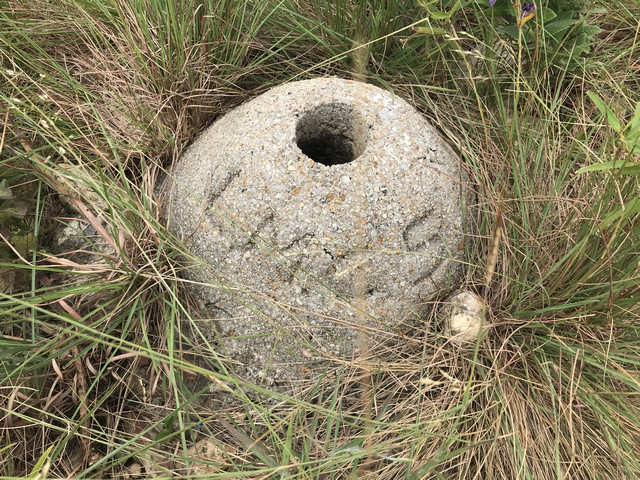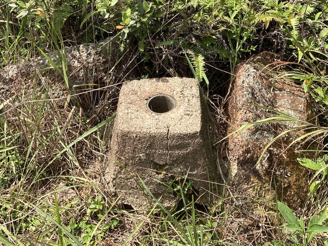 機槍堡PB315上面的標高柱(昔日編號#D80) 圓錐體,2至4英呎高,頂部直徑1.5英呎,底部直徑3英呎,中央有一孔,用來放置觀測柱 |