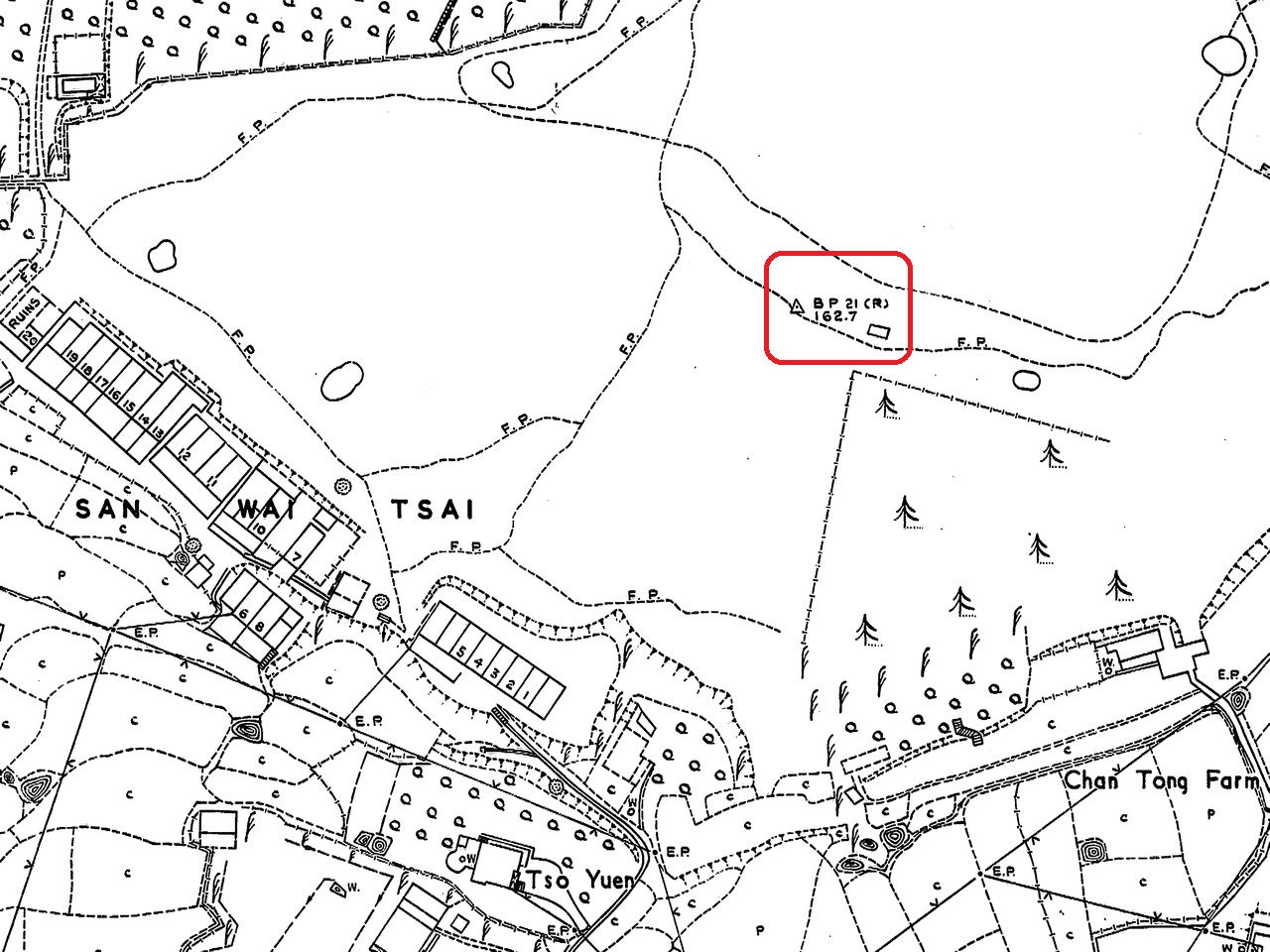- 深井清快塘附近(測量圖142-SE-B)1969年測量圖標示為D175(R),1972年之後測量圖標示為DT55