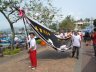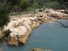 抵達碼頭後,沿新興海傍街前行,經過製冰廠後,右走接上長貴路前往大鬼灣。在盡處依照地圖指示牌的指示右轉,轉入長北路,踏著水泥徑上走,來到民航處導航站。隨後離開水泥徑,在左方的梯級上走。 沿石路左走,前行不久便看到鷹頭石,暫略過右方往東灣仔的下行石級繼續前行,及後踏上泥路﹝又稱勞力士徑﹞。先左走山徑觀飛鷹、蜥蜴、猩猩等奇石,及後返回分支朝山上涼亭的方向走至北眺亭。