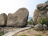 在路徑的另一個方向接回水泥徑,再下走少許便見左方的支路,下走至北社長利的休憩區後,沿左方的梯級下行至天后古廟(二級歷史建築),再右走至北帝廟(玉虛宮,一級歷史建築),然後來到東灣,看看長洲石刻(法定古蹟)。沿海灘旁的小路走至另一端,接上沿海小徑來到觀音灣。繼續前行,在路口左走明暉路不久即接上左方稱為小長城的石徑。