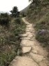 路線一(失敗):在打瀉油坳沿麥理浩徑前行,按照地圖指示,在M090與M091之間,左轉進入一小徑。沿小徑前行,來到兩座劉氏古墳和一道石牆後,卻找不到地圖上往大腦上洋的山徑。沿石牆下行了一段,沿途長了草和樹,沒有明確路徑,決定走回頭,返回麥理浩徑。
