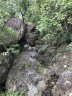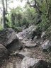 橫過東涌道,穿過燒烤場,繼續餘下約三分之一的路程。相比之下,這段路相比之前的路段更多變化,既有林區,亦有巨石,後段在開揚景觀陪伴下,踏石級下降二百多米。郊遊徑終點連接引水道凰凰徑標距柱L108,旁邊設有木椅,正好來個小休,緩和剛才不停落山引致的「腳震震」。相對前段南山至伯公坳,雖然感覺上後段路程趣味性比較高,但此段路比較有「挑戰性」,可能因為這個原因,又或者時間已經不早,沿途只遇到兩位外籍人士。