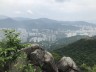 跨過石橋接上山小徑,步進「雞胸北坑」(又名「田雞坑」、「沙田頭坑」及「雞心坑」),沿澗旁上行,來到一個人工小水池後,離開澗道,沿左邊陡斜小徑上攀至一巨石,有人稱它為「大石觀景台」。這裏不僅可以俯瞰整個沙田,亦可欣賞獅子山、筆架山、針草帽以至八仙嶺,加上已經向上攀升了差不多360m,正好在此休息一下。