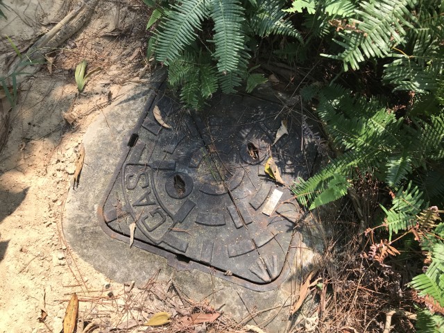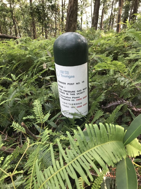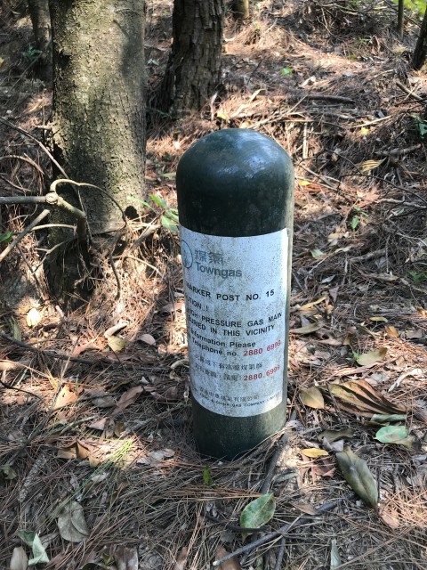 乘車到川龍,步行至川龍西煤氣檢管站,眼前便是兩支高高戴着四方帽的煤氣管道標柱(「標柱」),編號38及39,估計這款標柱是標示煤氣公司另一高壓煤氣管道,由林錦煤氣站經川龍再接荃灣西煤氣站。