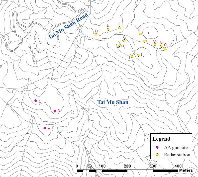 參考1952年地圖及地政總署的數碼地圖,雷達站東面三個地點亦有人工建築,但找不到相關資料,今次旅程亦未有探訪,至於它們是否同一時段建造及其用途,則有待高人指點迷津。這三個地點的坐標大約是: