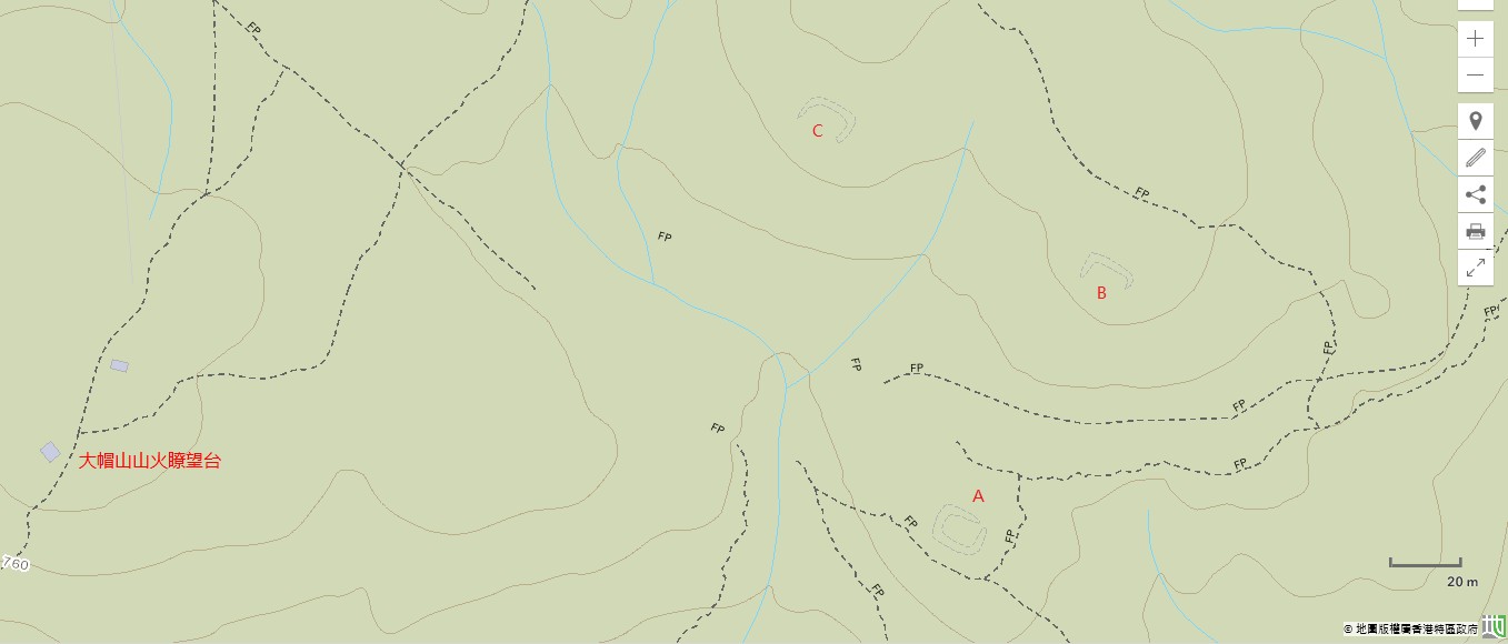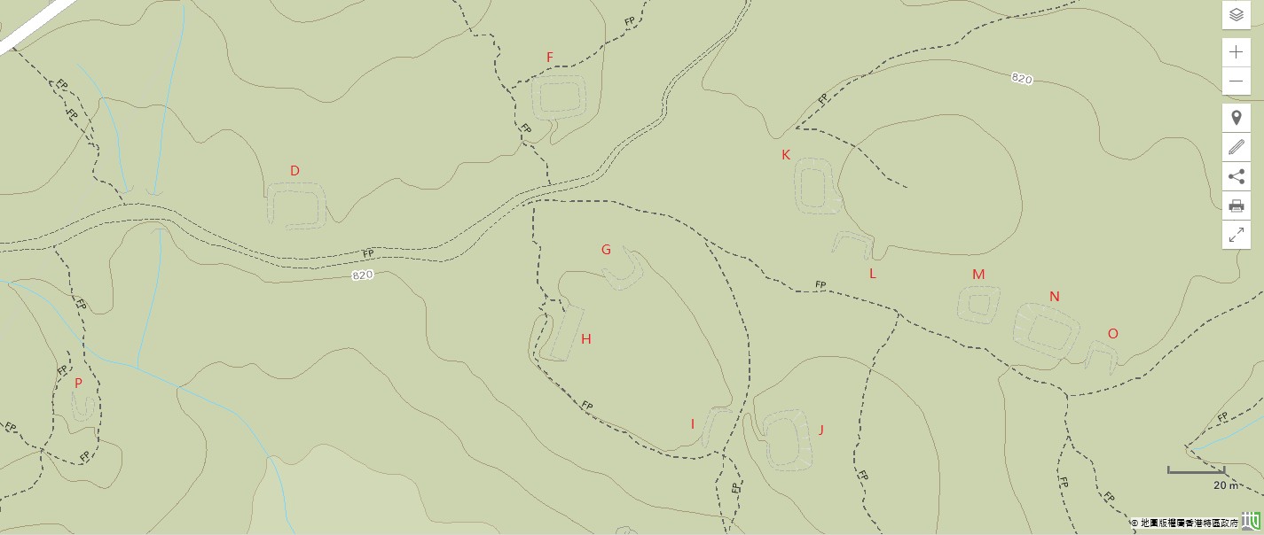 - 地政總署數碼地圖:第一部分、第二部分(筆者於每個地點附加一個英文字母作為標記)