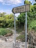 從井欄樹起步,逆行衛奕信徑,經過心朗村,來到新地村附近的路口,靠左步進小夏威夷徑,昔日地上問路石部份刻字被泥土覆蓋,泥土被清除後刻字重見天日,不知會否有人考慮把它扶起,免得被人踐踏。