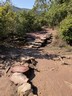 返回郊遊徑依指示步出渡頭,這裏景觀開揚,清澈海水襯托着紅色石灘,雖然路途有點遙遠但是值得。返回郊遊徑,沿湖畔(昔日農田)前行,沿上山小徑到達山丘上的西流江食水減壓缸,前行不遠便到達一個新建的觀景台,這兒可以俯瞰差不多整個印洲塘海岸景色,但日後若觀景台附近的樹長高了,景觀可能會被遮擋。沿山徑下降,不久便到達西流江村。根據昔日立法會文件,這段郊遊徑大部分路段都是吉澳供水計劃的線路,山徑下埋藏了食水管,路上亦不時見到水務署的沙井渠蓋。