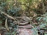初段攀升比較急,途中回望三椏涌,風景不錯。來到較平緩的山徑,地上有不少香楓樹葉,估計早前或許有紅葉遍佈山上。經過牛屎湖山的山坳後,沿山徑下降至昔日牛屎湖村村口,步進陰森的牛屎湖村,這條百年古村現今已被魚藤霸佔,看着眼前的頹垣可以想像昔日村落規模亦不少。有報章副刊靈異版講述牛屎湖村的歷史:「他們經多番考慮後,為了保命,決定集體棄村。在一九六五年六月二十三日,所有村民扶老攜幼,只帶幵簡單的行李,匆匆地搬離這個生活了多年的地方。一夜之間,全村空無一人,並荒廢至今」。另外,網上亦有牛屎湖村村長的訪問,有興趣的朋友不妨花點時間看看。