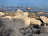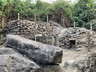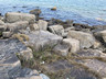 返回山徑往北面前行,旁邊可以看到石牆的基座。來到一個分叉路口,行右邊小徑,下降至一個彎位後,便見一條陡斜的山徑,山徑旁邊有人繫了繩索,小心翼翼沿山徑慢慢下降至岸邊,便見不少長立方體、狀似棺材的石柱散落岸上及水中。步行到一個小平台,地面有四方形石面,旁邊有些直立的、有些東歪西倒的四角石柱,令筆者記起一段關於北果洲月球崖的介紹:「岩層有一傾斜大斷裂,上面的岩石被風化變弱,最後斷裂並隨斜面滑下海峽,露出數個足球場大的斷裂面,甚為壯觀。在斷裂面上,六角柱石面清晰可見,如蜜蜂巢。」。或許棺材角的棺材石及身處的小平台都是因為類似的情況下形成。