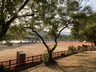 探訪棺材石後,便沿原路返回自然教育徑。沿自然教育徑前行,來到灣仔南營地,步出碼頭,看看香港童軍總會「賽馬會跨世紀大露營」紀念碑。每逢星期六、日及假日,灣仔南營地碼頭都有街渡往來黃石碼頭,如果時間有限可以考慮乘坐街渡在這裏起步/離開。返回自然教育徑,前行一小段便回到攔路坳,接回大灘郊遊徑。