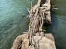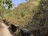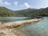 步上堤圍,沿堤圍前行,有在水中央的感覺。昔日堤圍有三道水閘,現在變成三個缺口,有人在個別缺口修葺了一些過路設施,但大家都要想想方法如何安全地跨過每個缺口。於堤圍漫步至另一端,踏上小徑,回望堤圍,十分敬佩昔日村民竟然可以在海中築起這道用來養魚的長堤。