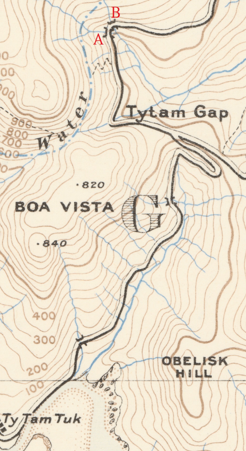 | 參考1913年地圖(按圖放大),此處附近應該有兩座橋(圖中的「A」及「B」) | |