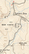 | 參考1987年的地圖(按圖放大),大潭道輸電塔附近是有小徑跨過兩條河流,之後接回大潭道,跟1913年地圖脗合 | |