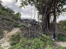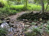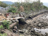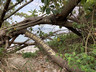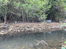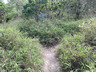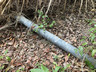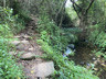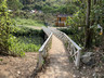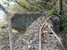 回到沙灘後方,剛才沿左邊小徑行,今次沿右邊小徑前行,經過一間廢屋,來到一條河前面,參考地圖,小徑左方似乎有一建築物,於是離開小徑,穿過廢田,便見地圖標示的方形水泥物體,估計應該是一座大水缸。返回小徑,跨過河溪,不久遇上一支舊電話線桿,參考地圖,左邊應該有鐵絲網圍欄及一座建築物,於是離開主徑,覓路來到鐵絲網範圍,只見水泥支柱,鐵絲網圍欄已不見了,再前行便見破屋剩下的部分石牆。