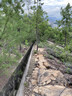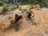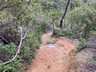 沙田坳是個休息的好地方,但始終還是要起行,只好依依不捨地離開沙田坳,沿衛奕信徑前行,經過數個山洞口之後,來到接近雞胸山山徑交界之前,左轉上山脊,探訪機槍堡PB215。返回衛奕信徑,再下降一小段,右轉小徑,離開衛奕信徑,經過貓仔山標高柱#TV111.10後,下降至機槍堡PB214,然後前往蝌蚪坪。早年沙田有一個採泥區,平整後西面納入郊野公園範圍,即正在踏足的蝌蚪坪,東面則成為今天的水泉澳邨。