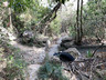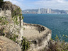 來到鯉魚門,穿過海鮮街,經過昔日海濱學校,來到天后廟附近,有興趣的朋友可以前行參觀天后廟及石礦場。在渠務署豎立的歷史水位柱往山上行,沿途設有「往衛奕信徑」指示,經過馬背及輋頂鄉村供水池後,來到一個彎位,在此離開水泥小徑大致往南面前行,不久之後便到達砵甸乍炮台一號炮位,向東面前行不遠,便是二號炮位。繼續向東北方前行,路旁仍有不少軍事建築,來到一個分叉路口,右轉水泥小徑往下行,便會到達一座發電機碉堡,對岸哥連臣角附近及舂坎角也有類似的建築。下降一段,轉入右邊的一條水泥小徑,水泥小徑盡頭繼續前行,經過昔日墓地,便會到達一個相信是觀測站碉堡,這碉堡有小徑連接石礦場及一號炮位。原路返回剛才的路口,繼續往下行,來到一個分叉路口,左右兩邊小徑盡頭各有一座探射燈台。
