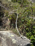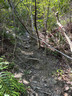 由清水灣道轉入飛鵝山道,往上行一段後步入左邊車路,來到接近飛鵝山道1號門前,轉右踏上登山小徑,朝山頂方向往上走。大約半小時後,來到一面崖壁,有人稱它為「A字崖」。崖壁左右均有小徑,選擇沿着左邊(西面)小徑登山,上攀至崖壁頂,在一片小平台稍作休息及欣賞風景。