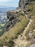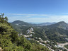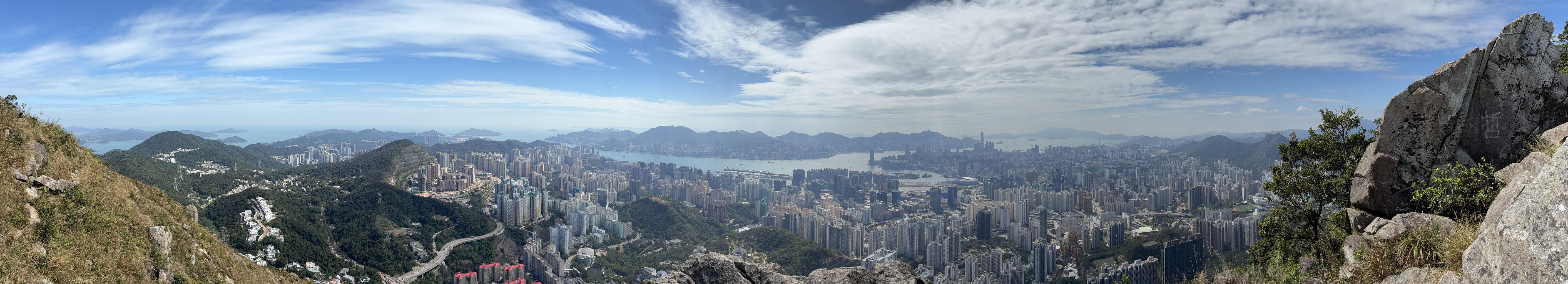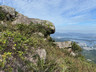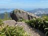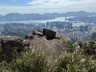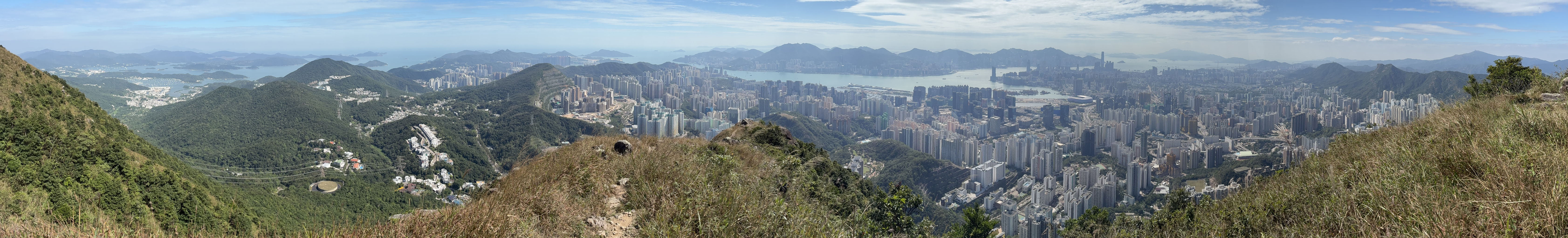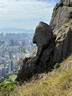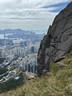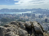 繼續沿着小徑往山頂方向往上走,不久之後便見到鸚鵡嘴石,再往上行一小段,便會看見自殺崖。步出自殺崖,看風景及拍照後,返回小徑,繼續往上行,來到自殺崖頂,看看風景(附:全景照片,最右邊可見「哲」字石),之後再沿小徑往上行,經過一些岩石堆,小徑變得較平緩(附:全景照片),發射站已在眼前不遠處。步過無線電站外圍,踏上水泥石級,登上山頂,再次探訪發射站及標高柱,然後下降至直升機坪,休息及看看風景。從清水灣道來到這兒,連休息拍照,花了約兩小時。如果同行山友喜愛拍照拍片打咭,飛鵝南脊沿途的山、海、崖、石、城市、藍天、白雲等,或多或少都可以滿足他/她要求,更甚若遇上芒草盛放,務必要預留更多時間排隊拍照。