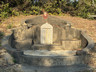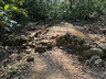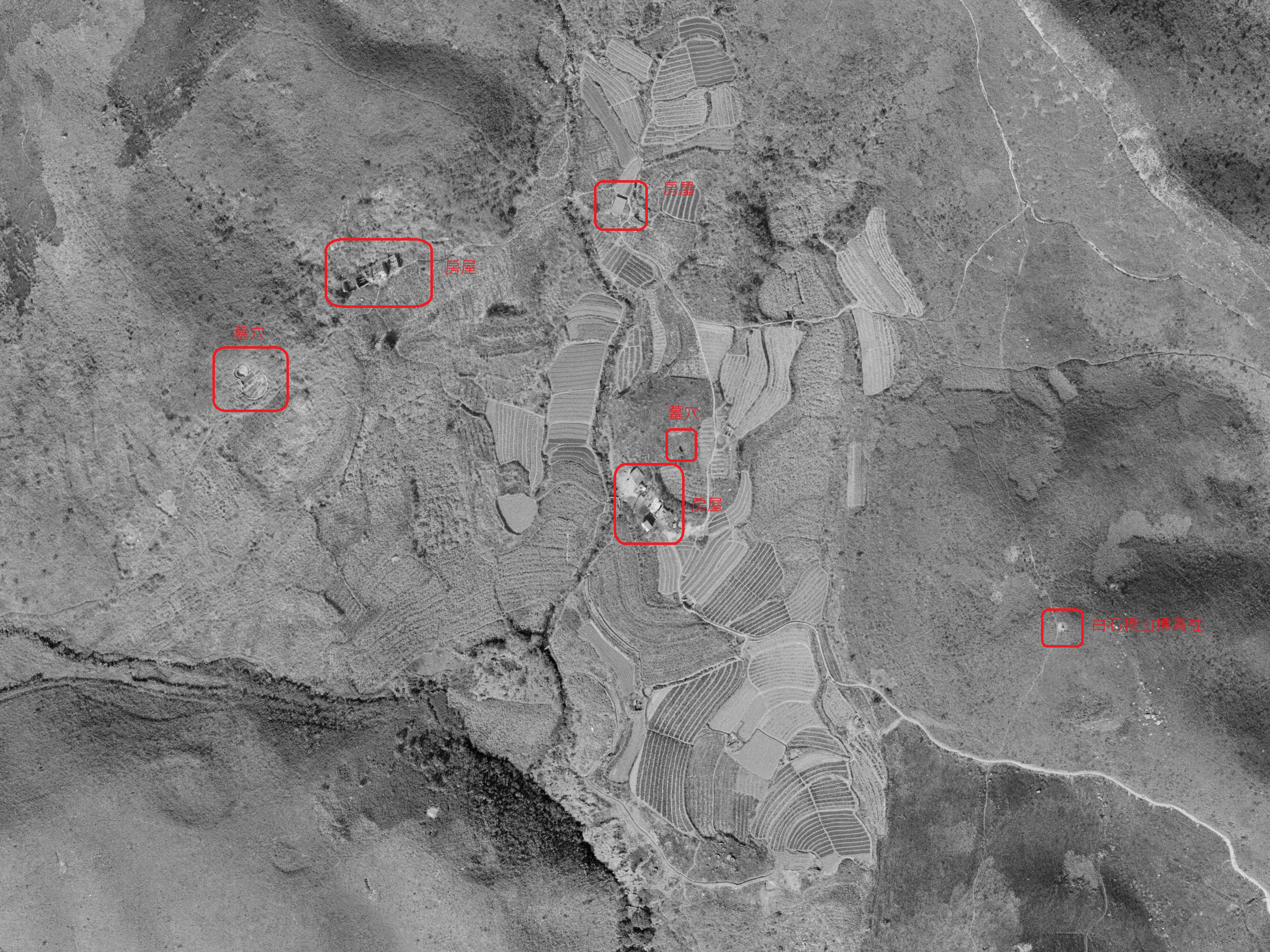 返回村口,沿着大欖煤氣管道小徑前行,經過一個渠蓋後不久,右邊山上不遠處有一座墓穴,走去看看,根據碑文,墓主原籍白石橋村,喝形「觀音座蓮」,1978年重修。返回小徑,覓路穿過樹叢往下行,來到昔日西北面村屋,部份石砌牆身仍然存在。村屋西邊盡頭有一面丁酉年立的「崑崙教」石碑,估計仍有人前來打理。覓路步向西面不遠的墓穴,墓穴規模頗大,喝形「飛鳳啣書」,屬於香港名穴之一,但似乎已經有段時間沒有人前來打理拜祭。