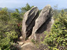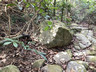 繼續靠右前行,經過一支野外定向標柱(印象中涌沙頂附近也有一支13號標柱),翻查網上資料,昔日涌沙頂至灣仔半島是野外定向白沙澳賽區,曾經舉行不少野外定向比賽,當中甚至包括世界杯賽事,但於約廿年前停用。再前行一小段,便來到筊杯石。沿着筊杯石右邊的小徑前行,下降至大灘郊遊徑。由登獅地開始,大部份時間都是於叢林小徑穿梭上落,在這兒感覺終於逃出叢林,可以放鬆一下。