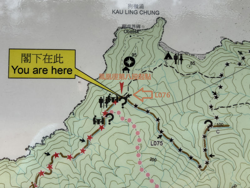 L076應該是屬於鳳凰徑第七段抑或第八段?實地所見,如果順走第七段,會先遇上L076,然後才到達分段資訊牌。分段資訊牌的地圖亦標示L076在第八段起點之前,所以筆者認為L076應該是位於第七段內。至於何時開始L076被「納入」第八段?翻看昔日照片,2012年的L076並沒有分段資訊,2017年的L076已經被標示為第八段。