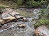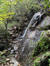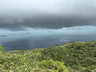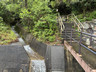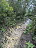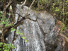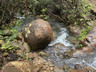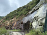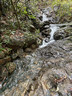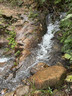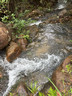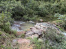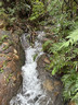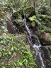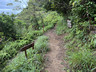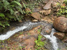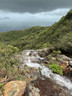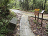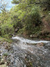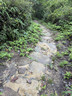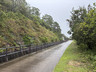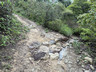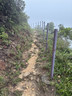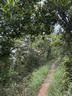沿着鳳凰徑/羗山郊遊徑行,來到分岔路口,鳳凰徑及羗山郊遊徑在此分途,依指示轉右往下行,來到標距柱C1307的分岔路口,左邊是舊日的羗山郊遊徑,現時仍有官方路徑前往鳳凰徑第八段引水道近大浪灣村。依指示轉右,踏進橫山徑。路途起伏不大,偶在樹陰下行走,偶有開揚海景,但可以肯定的是,這段路遊人甚少,有大量攔路蜘蛛網,步過樹陰底務必要看清楚,以免成為網中人。原先以為這段橫山徑會頗為沉悶,但這兩三天下過雨,而山徑會跨過數條石澗上游,景色有點意想不到,但由於水流有點漲及急,過澗時必需小心處理,安全至上。接近橫山徑最後一道石澗(靈白左澗)前,南面一大片下着雨的黑雲正朝向大嶼山推進,只好加快腳步,幸好順利安全過澗,然後扺達從分水坳下來的分岔路口,迎接郊遊徑餘下約一公里的落山路段。下降途中,大雨來臨,幸好小徑上有不少排水溝/引流壆,加上小徑有些斜度,小徑積水不算多;但即使是高端的行山鞋,只要鞋底坑紋積聚了沙泥,無可避免抓地力必定大打折扣,在所難免會感到「跣」。來到小徑盡頭,完成了逆走羗山郊遊徑,步過跨引水道的行人橋,踏上引水道旁的車路,亦即是鳳凰徑第八段。由於想探訪L076,於是轉右朝分流方向前行,不久之後便見L076。